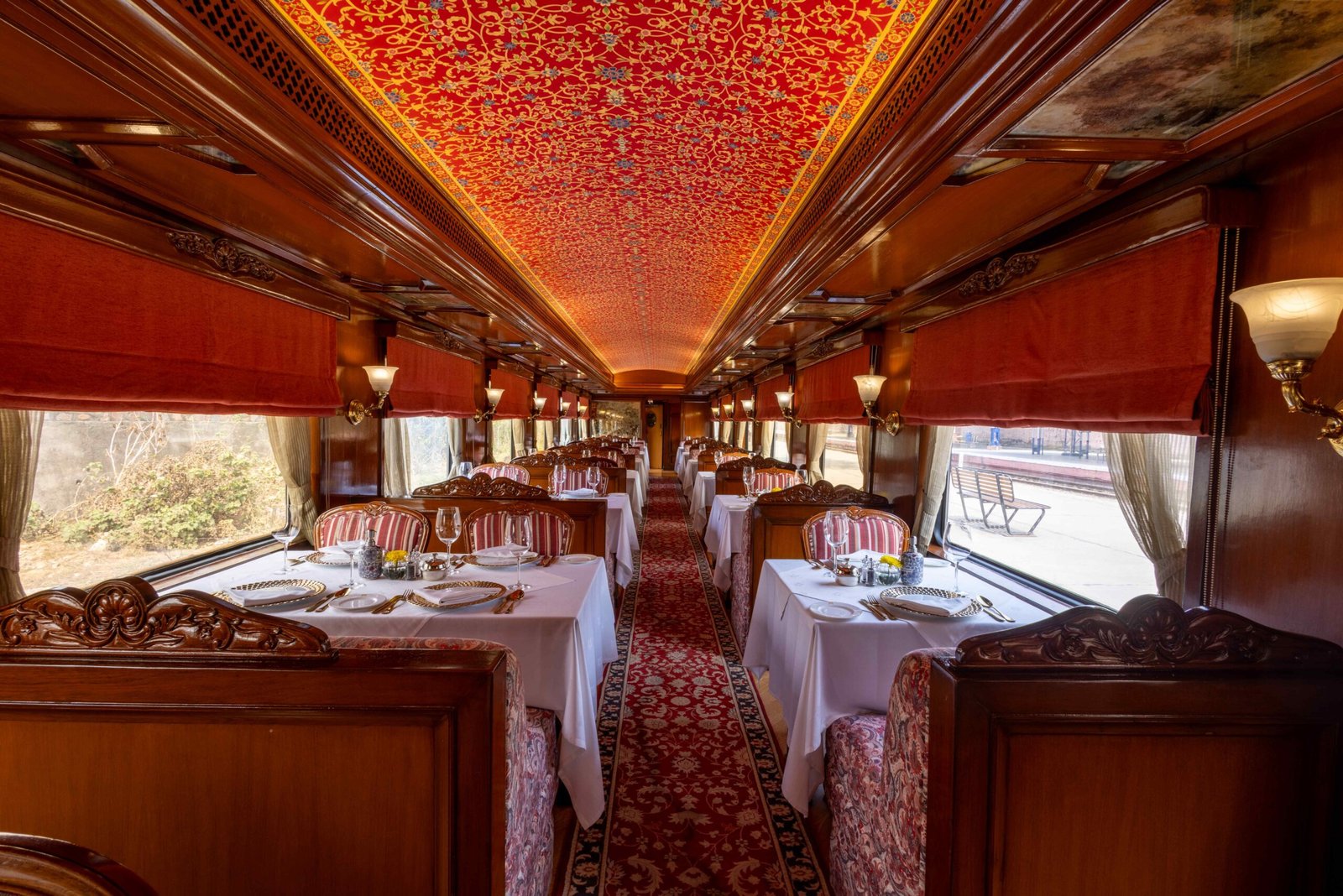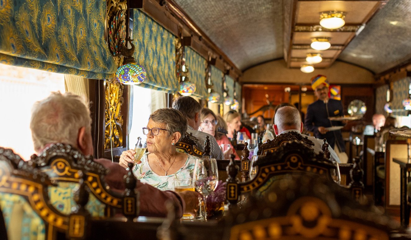 Dining aboard the Maharaja Express is a royal affair, and the image gallery captures this magnificently. The Maharaja Express pictures of the two dining cars, the Mayur Mahal and the Rang Mahal, highlight their grandeur. The photos showcase the exquisite table settings, elegant chandeliers, and rich upholstery that create a sophisticated dining atmosphere. The culinary journey on the train is equally impressive, with gourmet meals prepared by expert chefs, offering a blend of traditional Indian and international cuisines.